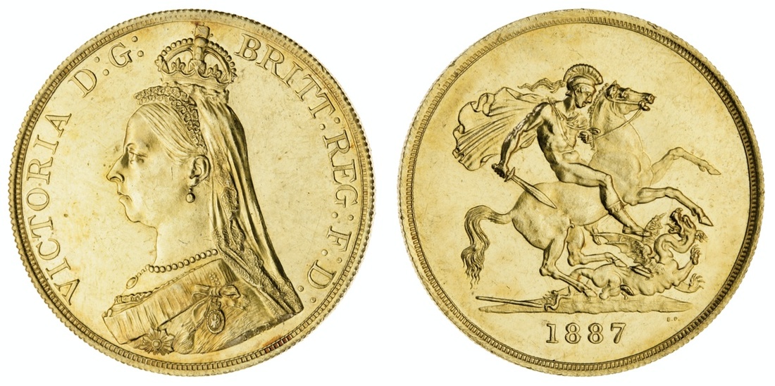 (g) Victoria (1837-1901), Five-Pounds, 1887 (S.3864), brilliant fields, muted in parts by the faintest of surface friction, otherwise sharply struck, good extremely fine