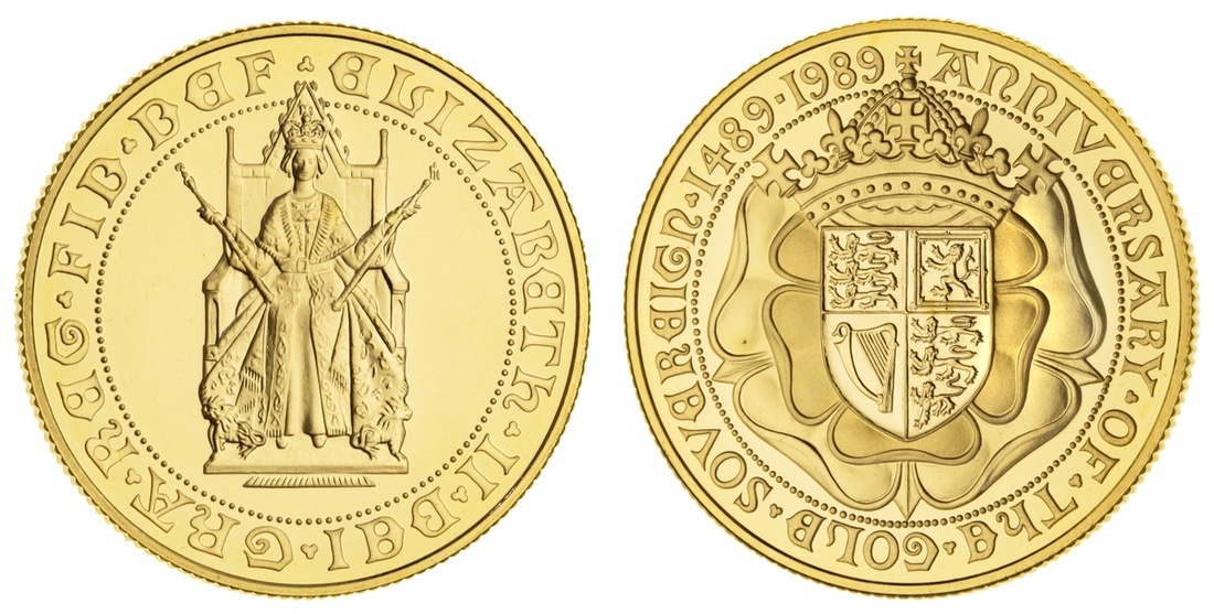 (g) Elizabeth II (1952-), gold Proof Two-Pounds, 1989, "500th Anniversary of the Sovereign" (S.4262), brilliant uncirculated, in Royal Mint screw capsule of issue