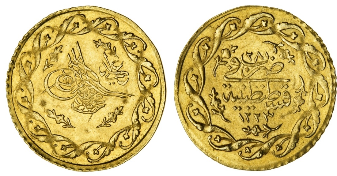 Turkey, Mahmud II (1808-1839), gold Cedid Mahmudiye, 1.59g, Qustantiniye, AH1223 / 28 (KM.645), very fine