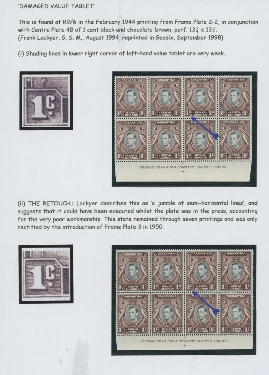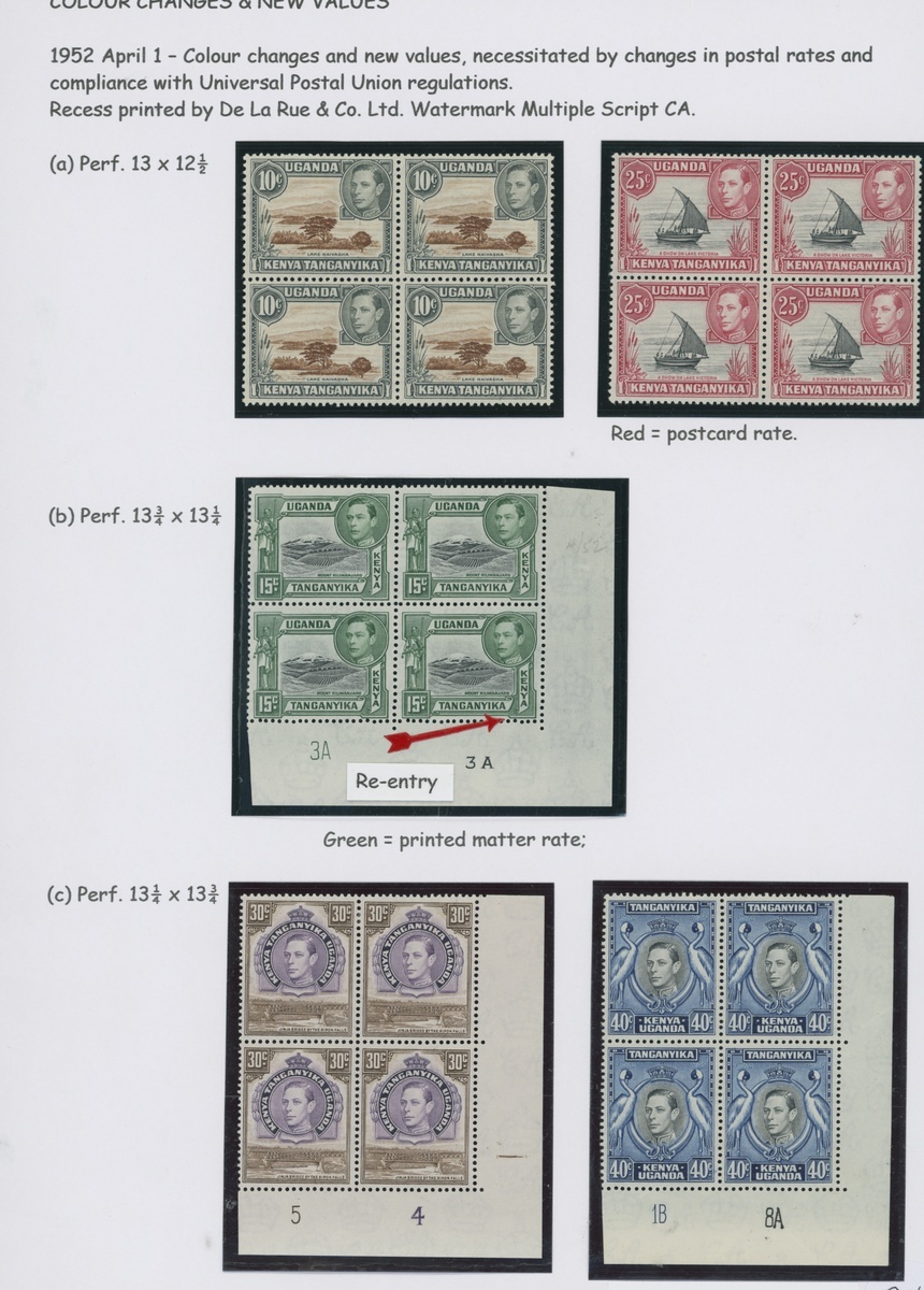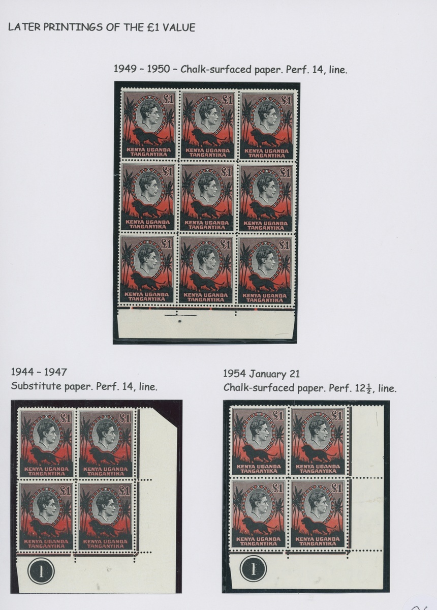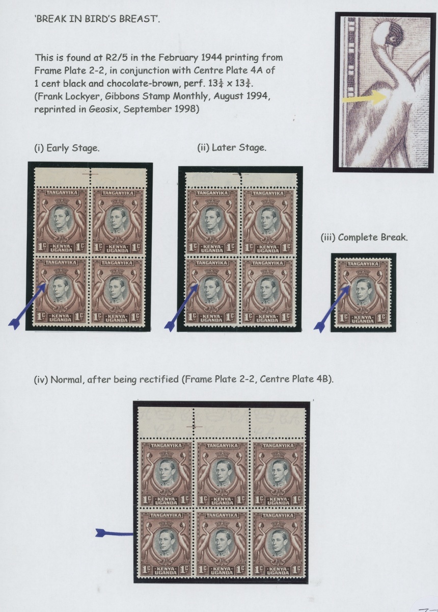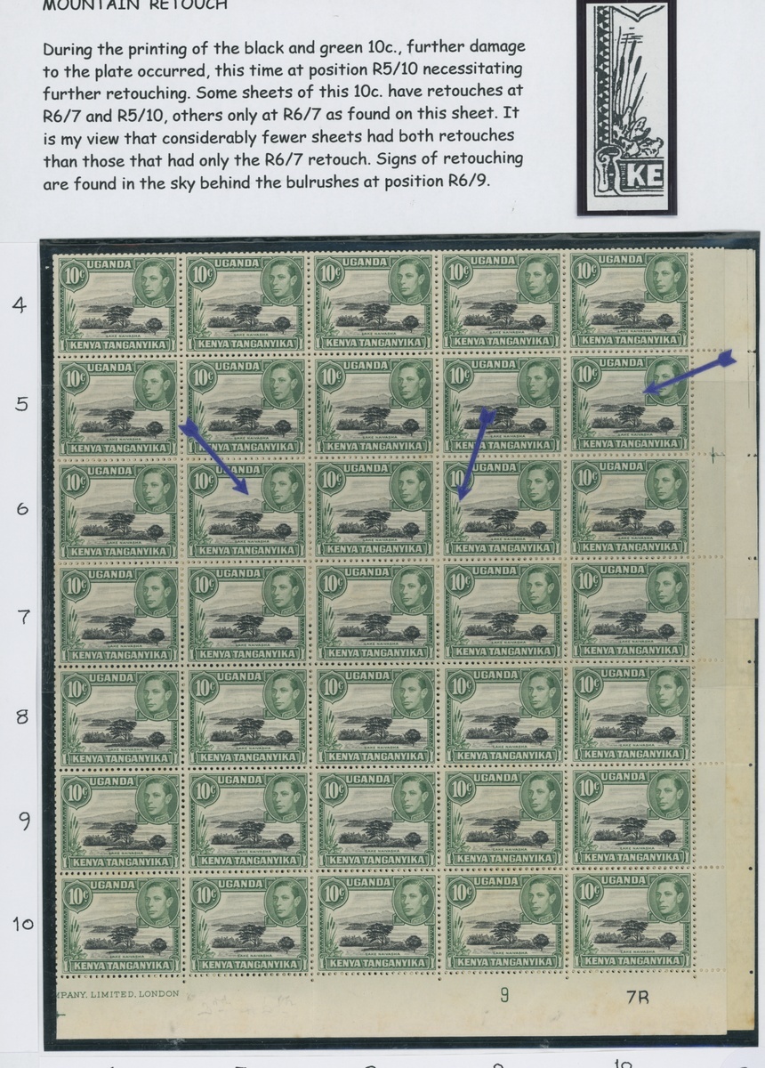 1c. to £1 range including most listed perfs including perf 11¾x13 £1, 1c. perf 13¼x13¾ top marginal blocks of four (2) and single showing stages of break in bird's breast flaw, 1c. imprint blocks of eight (4x2) showing damaged value tablet and retouched value tablet, and 1c. lower right corner plate block of six (3x2) showing "tadpole" flaw, coil stamps of 5c. black and green vertical strips of four (2), 5c. reddish brown and orange vertical pairs (2), 10c. red-brown and orange strips of four (2) and vertical pairs (2) and 50c. vertical pair, 10c. black and green complete sheet and block of four with mountain retouch (R.6/7), the sheet without the retouch on R.5/10, 50c. perf 13x12½ used block of six (2x3) with dot remaining on two stamps lower left corner block of twenty-four (4x6) with five still showing the dot, £1 line perf 14 marginal block of four on chalk-surfaced paper, lower right corner plat block of four on substitute paper and line perf 12½ lower right corner plate block of four. A fine lot