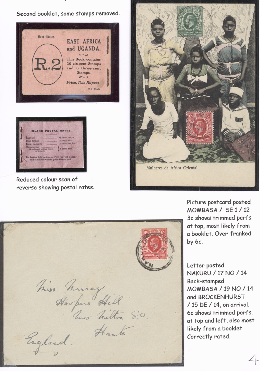 1912-17 2r. black on pink, incomplete containing 3c. block of four and 6c. panes of six (3) and a pair, two of the panes with trimmed perfs at top and some slight browning to gum, and the covers a touch soiled, very rare; also 3c. (trimmed perfs at top) with 6c. on 1912 postcard, and 6c. (trimmed perfs on two sides) on 1914 envelope. S.G. SB2, £2500 (for complete)