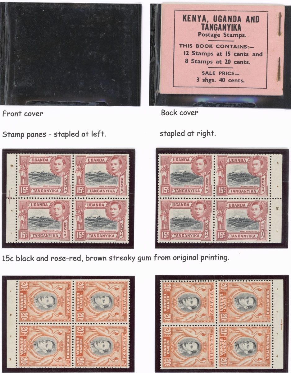 1938 3s.40 black on pink complete, stapled at right, some with trimmed perfs, fine; also 15c. (2) and 20c. (2) panes of four. Scarce. SB3, £300