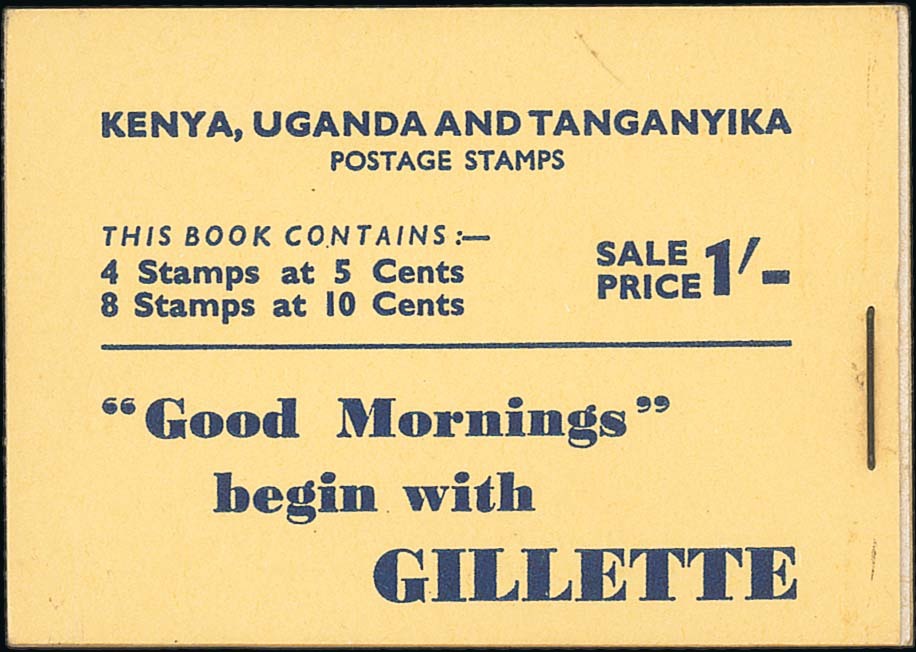 1950-52 1s. blue on yellow with 10c. black and green, complete, all with perfs trimmed at foot, stapled at right, fine, plus 5c. and 10c. (2) panes; also 1s. black on yellow with 10c. brown and grey, complete, all with some trimmed perfs, stitched at right, fine, plus 5c. (2) and 10c. (2) panes. The former rare. S.G. SB4, SB4a, £800. Photo for first