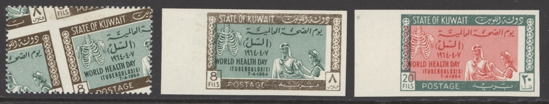 1964 World Health Day set imperf., also 8f. grossly misperforated; unmounted mint, fine. S.G. 242-243vars.