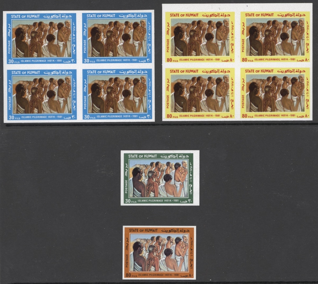 1981 Pilgrimage to Mecca set imperforate, also the two values in unissued colours in blocks of four; unmounted mint, fine. S.G. 915-916vars.