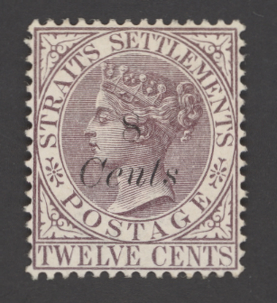 1884 8c. on 12c. brown-purple, large part original gum, slight hinge remainder, fine. S.G. 75, £750.
