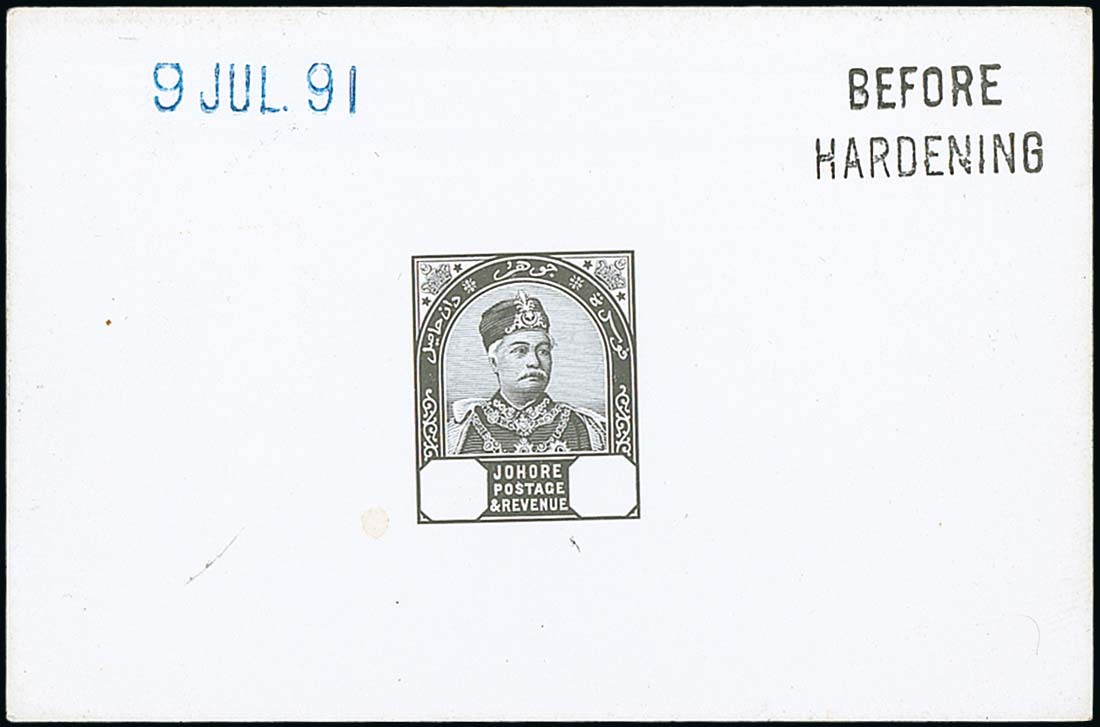 1891-94 master die proof with blank value tablets, in black on glazed card (92x60mm.) marked