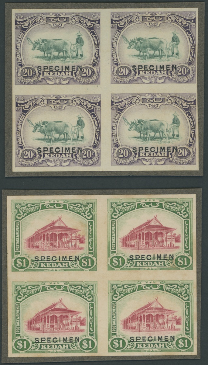 c.1922 imperforate Printer's Samples 20c. blue-green and purple-brown and $1 carmine and green each in block of four, affixed to brown card and overprinted