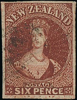 6d. red-brown, clear Row 17/1- re-entry, good to large margins and lightly cancelled; very fine. S.G. 43. Photo