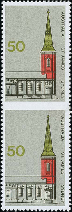 (x) 1973 (Oct.) Architecture 50c. vertical pair, variety imperforate between, fine unmounted mint. BW 657b, $2000. Photo