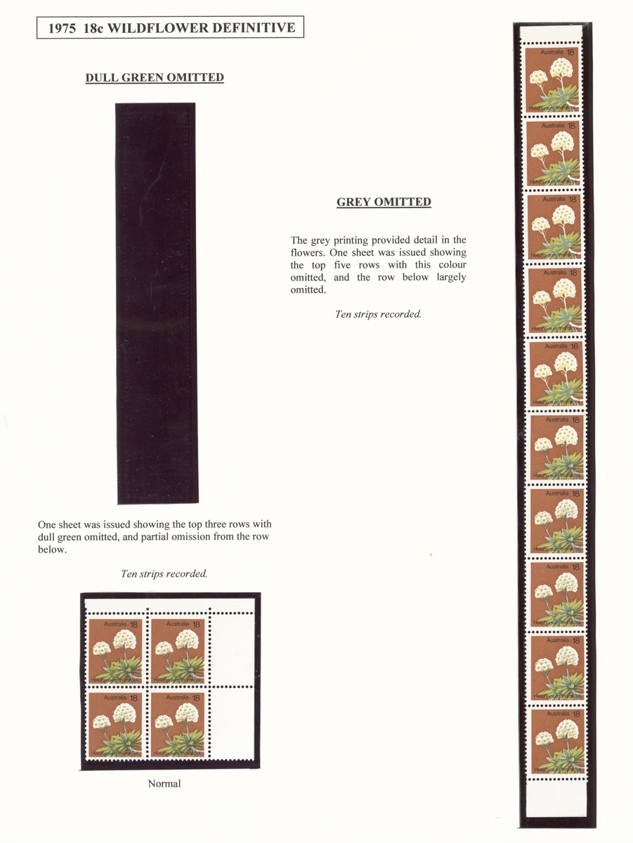 18c. vertical strip of ten with margins at ends, the top five stamps with grey (stems, etc.) omitted and the sixth with partial omission, fine unmounted mint. BW 725cf, $2250; S.G. 608b, £1250+