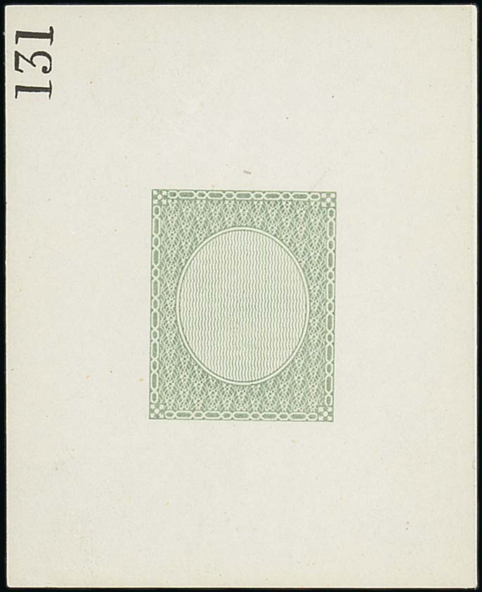 In pale green, on gummed paper (55x70mm.) numbered "131", unique in private hands. Photo