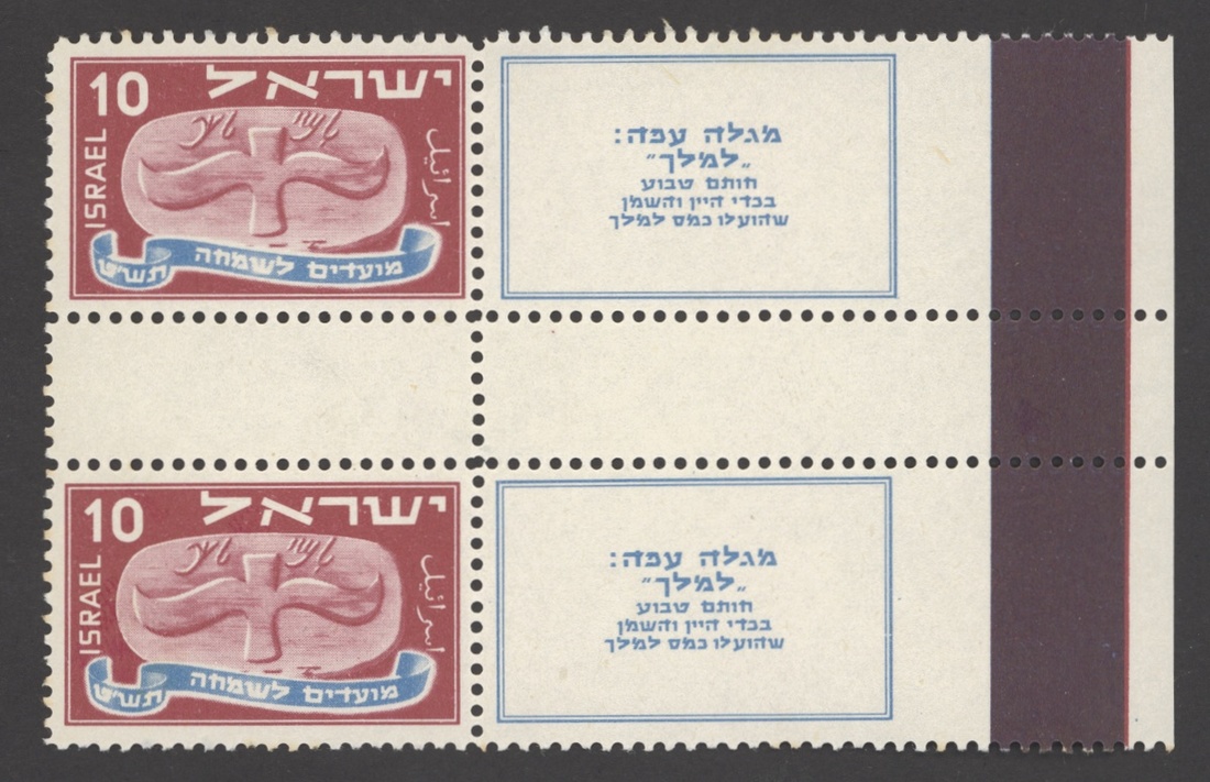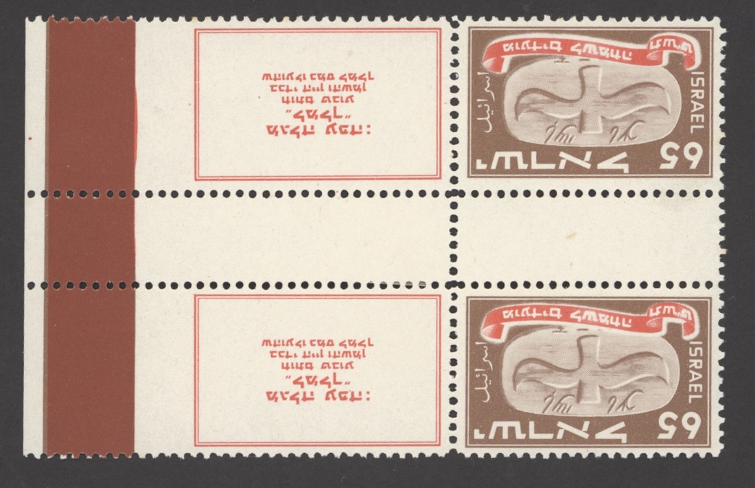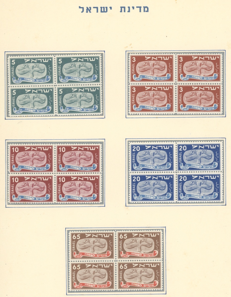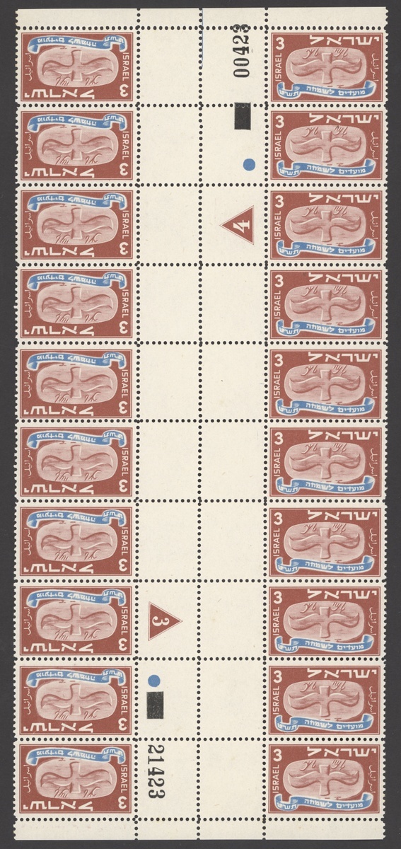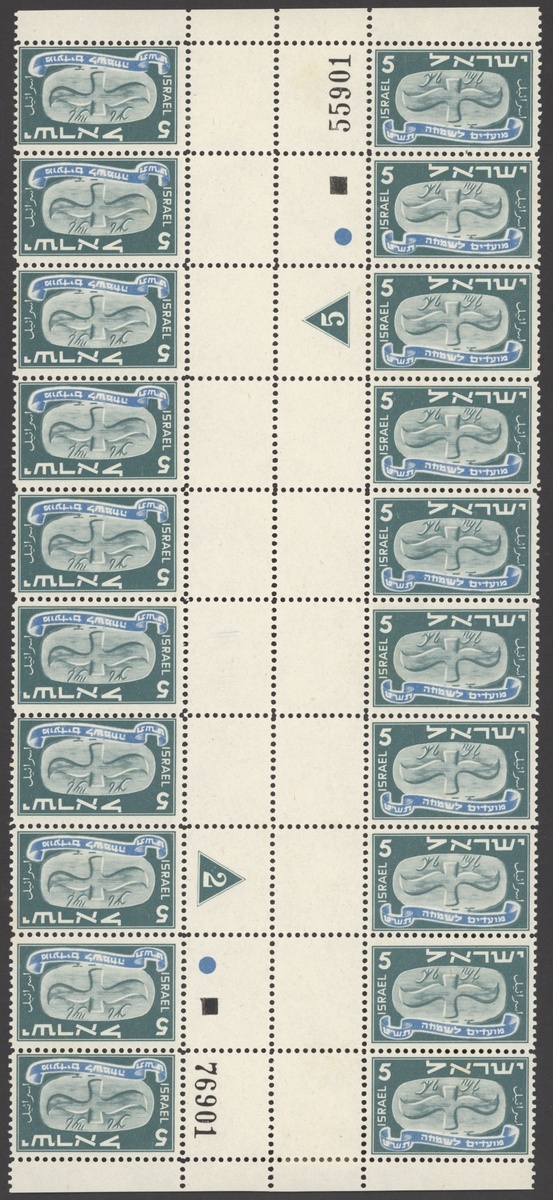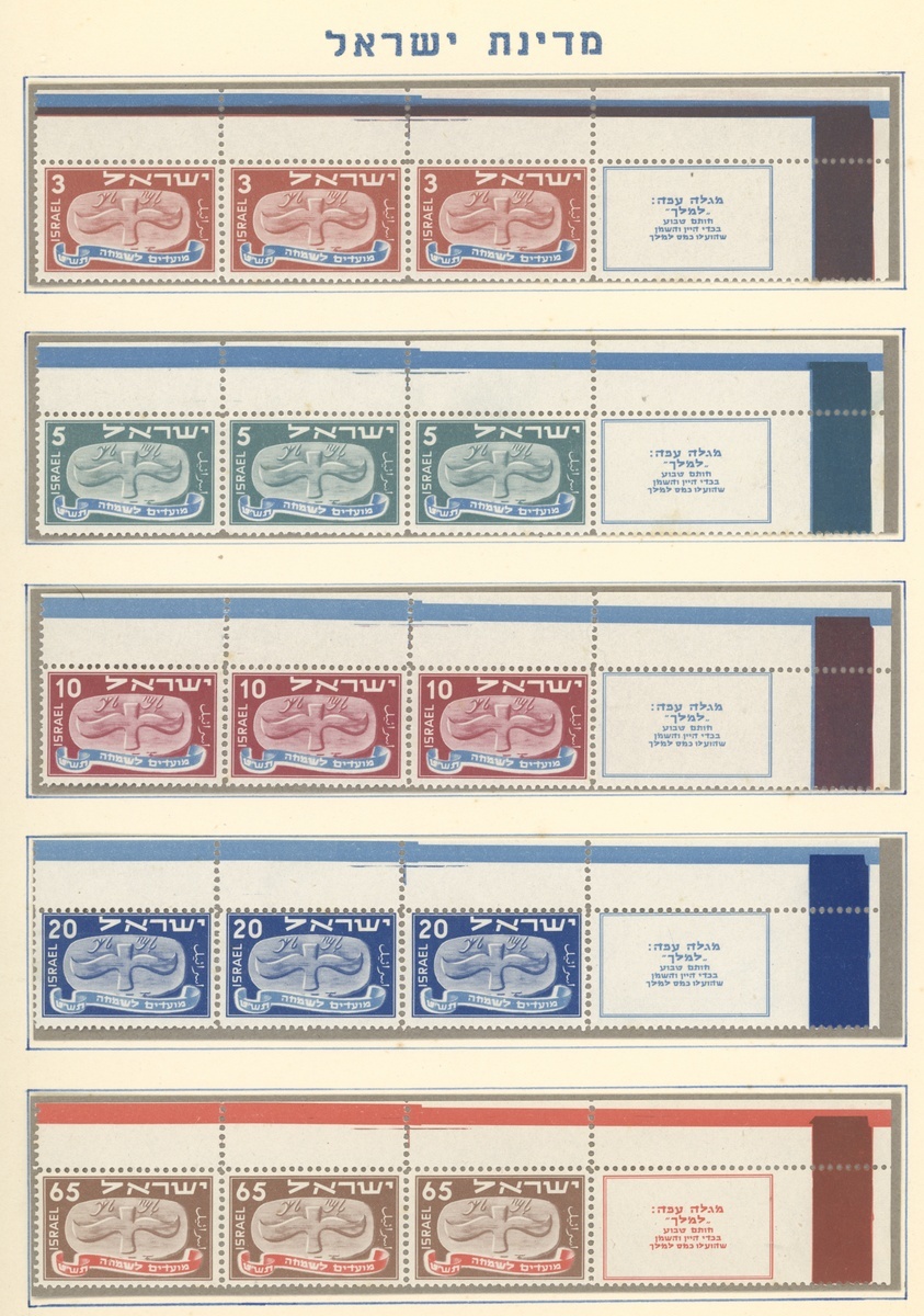 Collection on leaves, including sets with white and coloured tabs (2 of each), set in vertical gutter pairs with tabs white tabs, set in vertical gutter pairs with coloured tabs, set of Plate number singles (1-6), set of tête-bêche strips of ten with two plate numbers. etc., some traces of staining but chiefly fine. S.G. 10-14