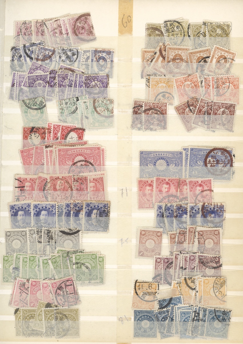 Mostly mint selection housed in two stockbooks and loose contained in a carton,  including forgeries of the early issues, 1899-1908 5y. and 10y. (both used), 1905 Postal Services 3s., 1940 Kirishima park miniature sheet, 1946 Postal Service miniature sheet, 1948 Philatelic Week 5y. sheet of 5, 1949 Postal Week 8y. (2), 1955 Philatelic Week 10y. sheet of 10 (stained margins), Ryukyu Islands, 1958-61 ½c. to $1, 1960 Air surcharges, etv., mixed condition