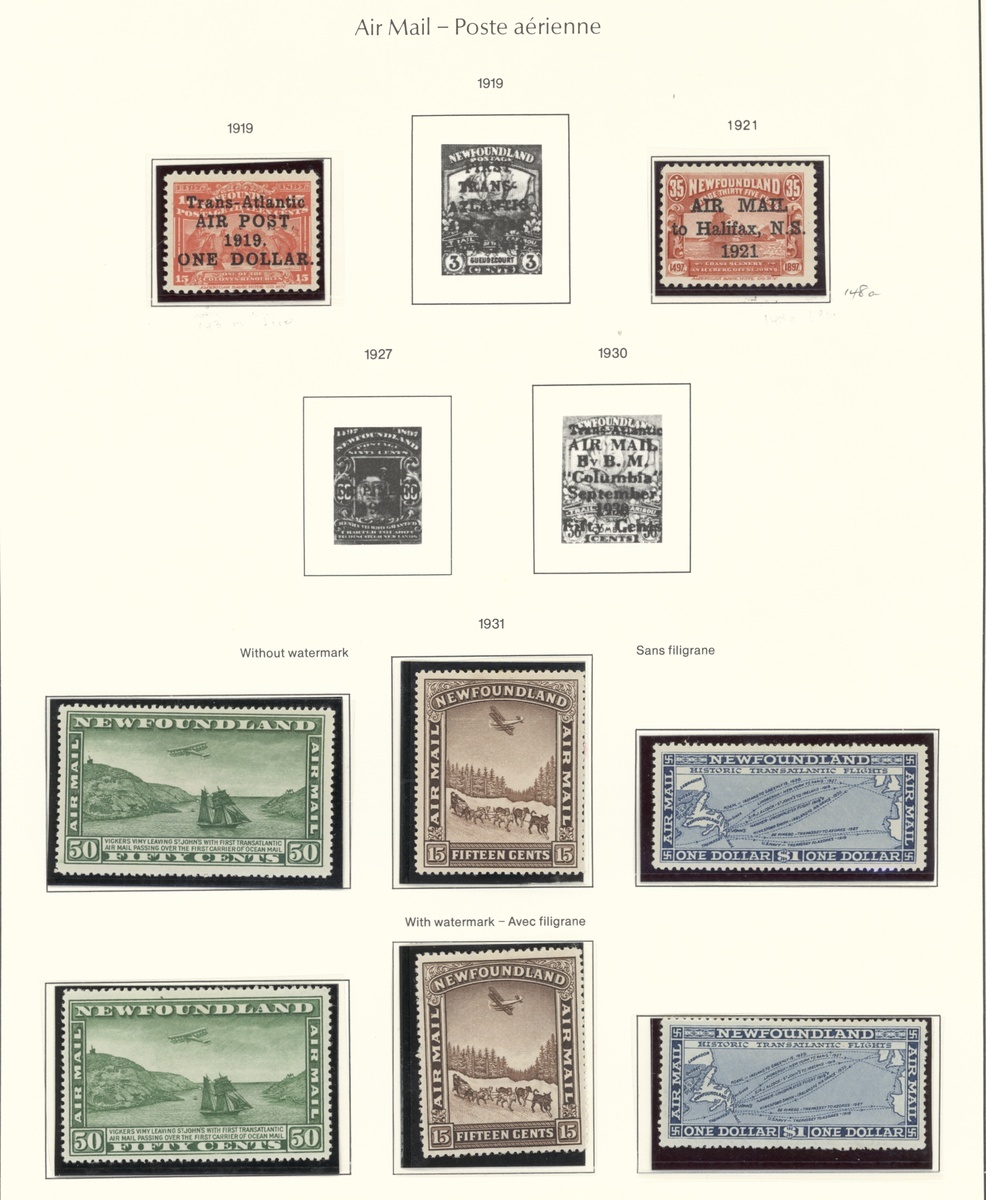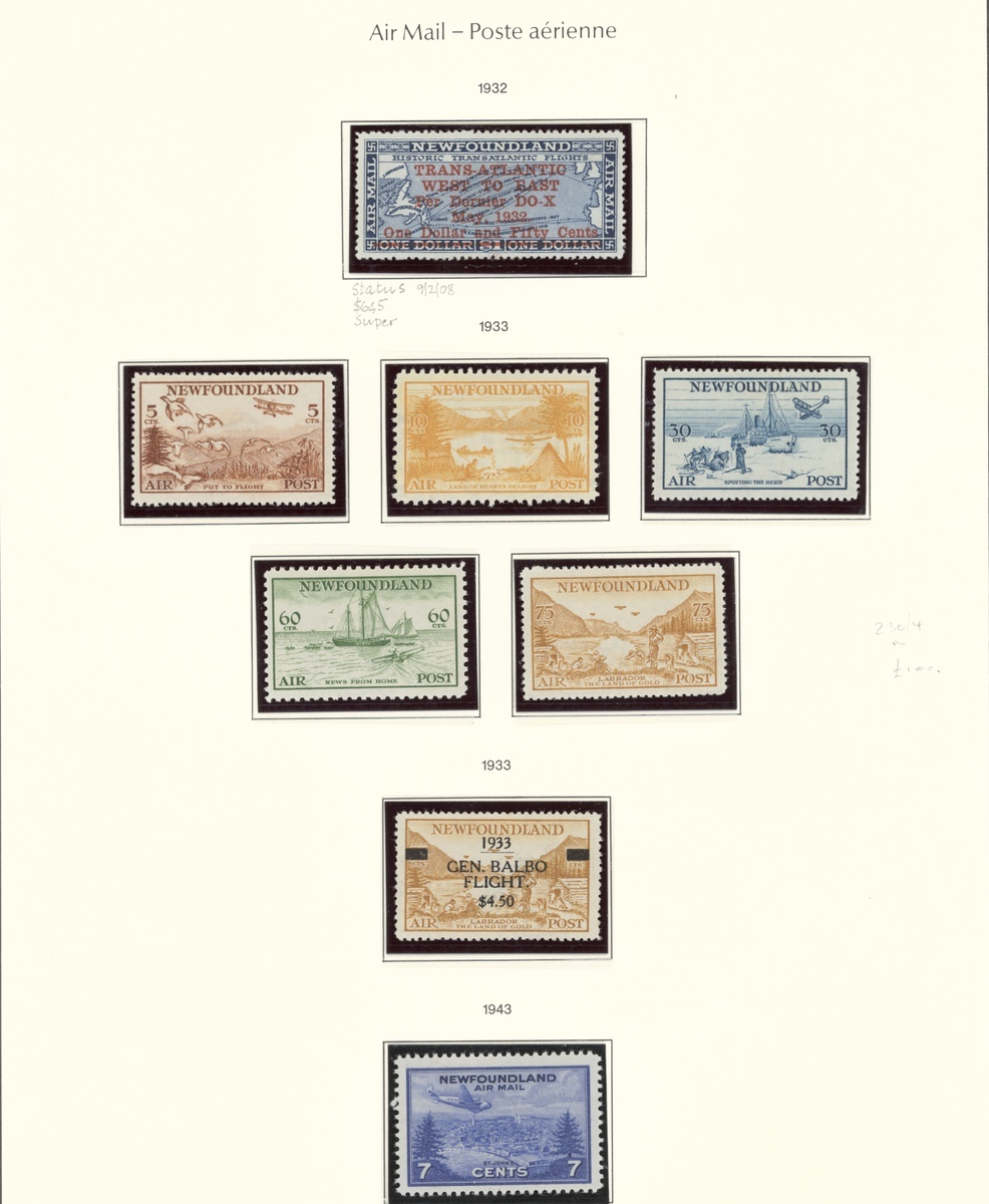 1919-43 Air selection with 1919 $1 on 15c., 1921 2¾mm. setting 35c. without stop (thin at top), 1931 watermark and no watermark sets, 1932 $1.50 on $1, 1933 Labrador set of five, 1933 Balbo $4.50 on 75c. and 1943 7c., mint and generally fine. Cat. £1,160
