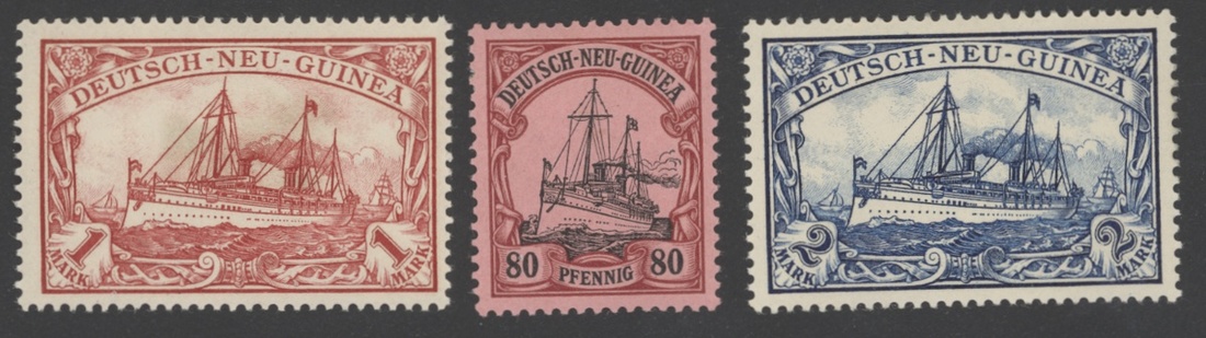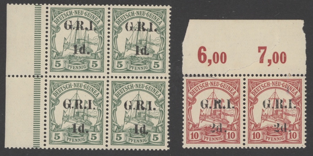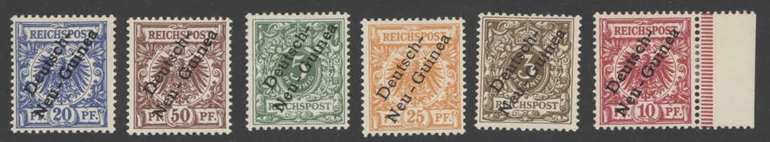 1897-1915 mint collection on Plymouth pages comprising 1897-99 overprint set of six, 1901 set up to the 3m. violet-black, Fournier forgeries, 1914 surcharged set to the 8d. on 80pf, as well as some in pairs and blocks of four and finally 1915 Manus and Rabaul Registration labels, a nice selection in chiefly fine condition.