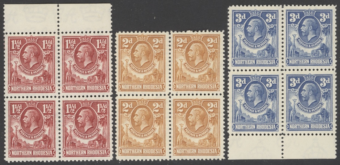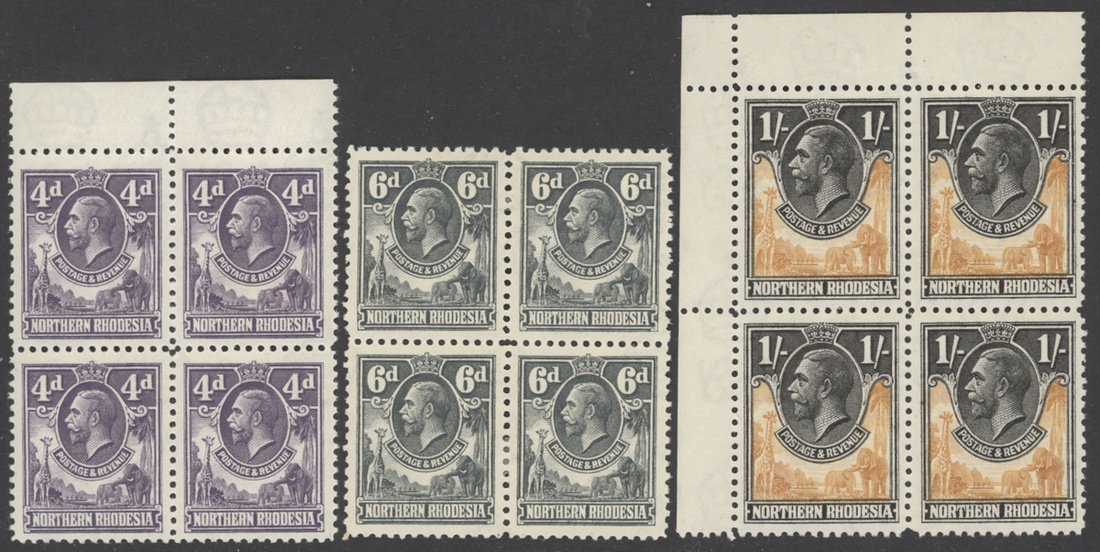 1925-29 ½d. to 6d. and 1/- in blocks of four, all but the 2d. and 6d. marginal, mint with many stamp unmounted. Cat. £151+