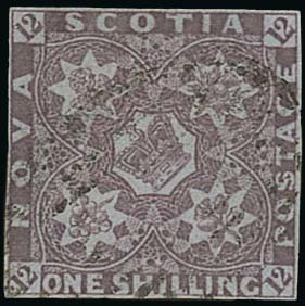 1/- cold violet, clear to good margins all round, lightly cancelled; a sound example of this rare stamp. B.P.A. Certificate (1989). S.G. 7, £5.500. Photo