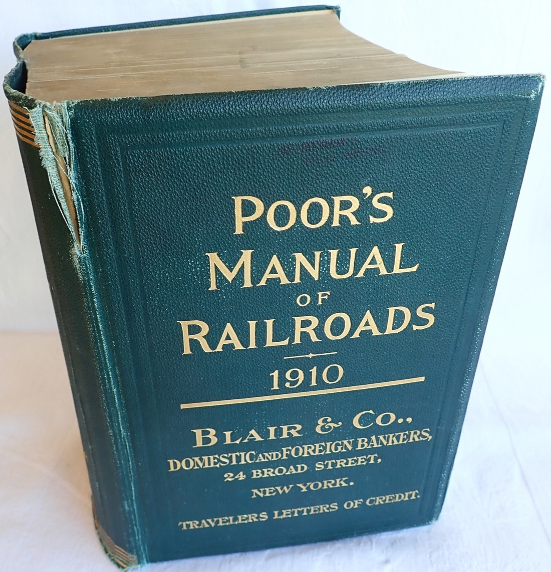 Book: Poor's Manual of Railroads, 1910, 2710 pages including a few adverts, cxiv index and introduction, original green cloth with some wear otherwise in good condition. All North American Railroads in existence in that year with history and financial information.