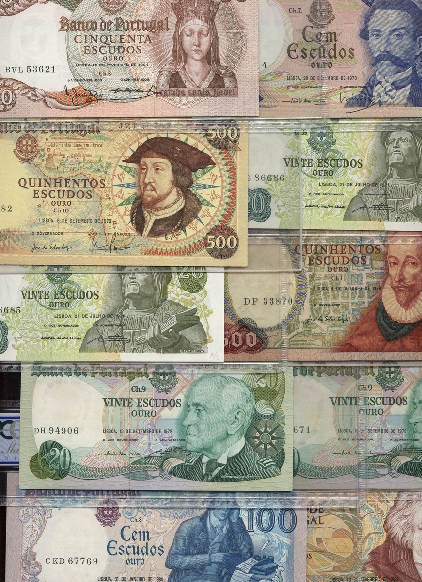 (x) Banco de Portugal, a selection: comprising 50 escudos, 1964, 100 escudos, 1978, 500 escudos, 1979, 20 escudos (2), 1971, 1979, 20 escudos (2), 1978, 500 escudos, 1979, 100 escudos, 1984, 500 escudos (3), 1992, 1993 (2), 1000 escudos, 1983,