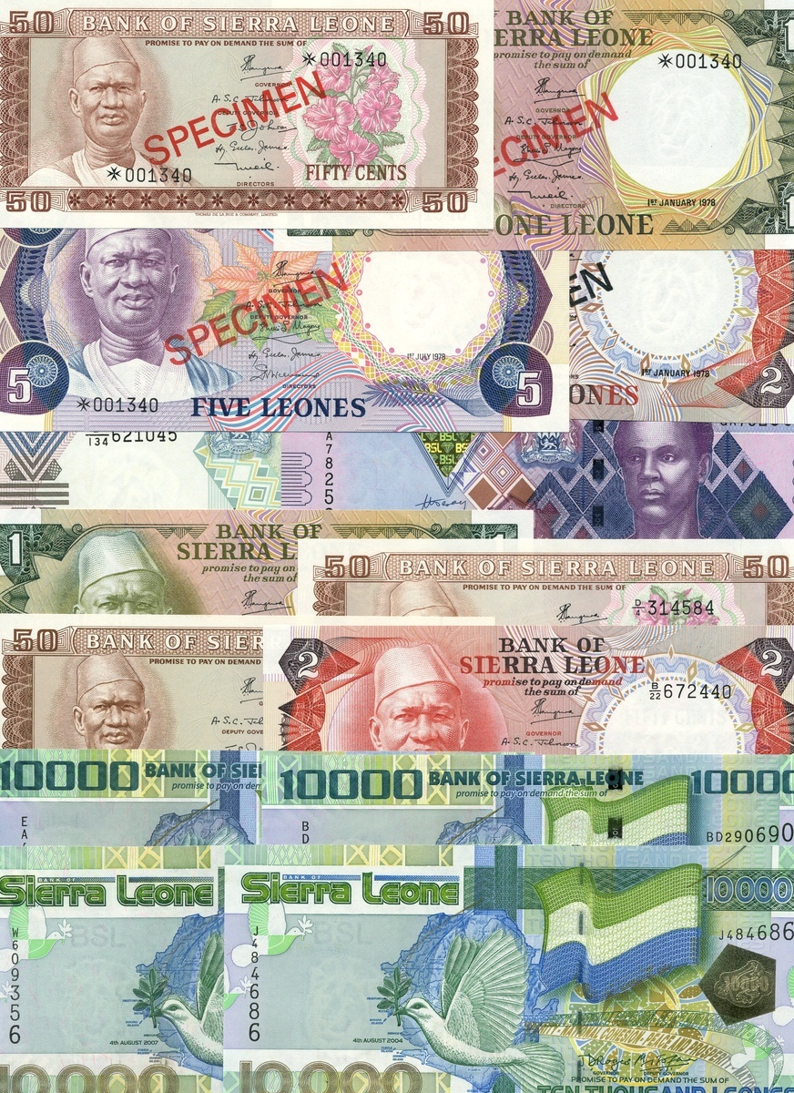 (x) Bank of Sierra Leone, a comprehensive group of the later issues, (1974-), including the rare 2 leones of 1978, in addition a collectors set of 1979