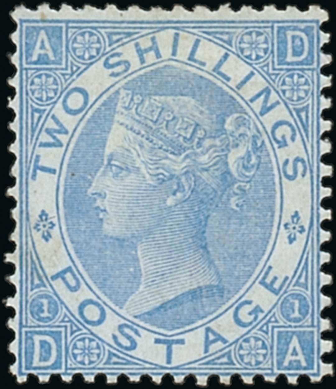 2/- pale blue, Plate 1: DA, part original gum; attractive and rare. S.G. 120, £4,000. Photo