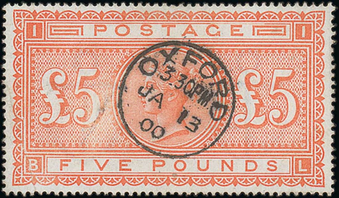 £5 orange, BL, central Oxford c.d.s. of 13 Jan 1900, reduced crayon strike; fine. S.G. 137, £4,750. Photo