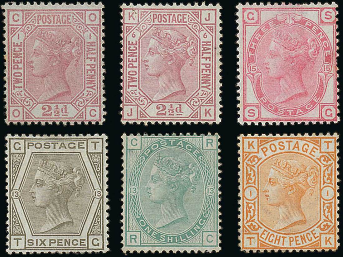 Watermark anchor, blued paper 2½d. rosy-mauve, Plate 1, White paper 2½d. Plate 3, Watermark Orb 2½d. rosy mauve Plate 6, 2½d. blue Plate 19, Watermark Spray 3d. Plates 15 and 20, 6d. Plates 13 and 14, 1/- Plate 13, Watermark Garter 8d., original gum, unused or regummed, chiefly good to fine. £7,775. Photo
