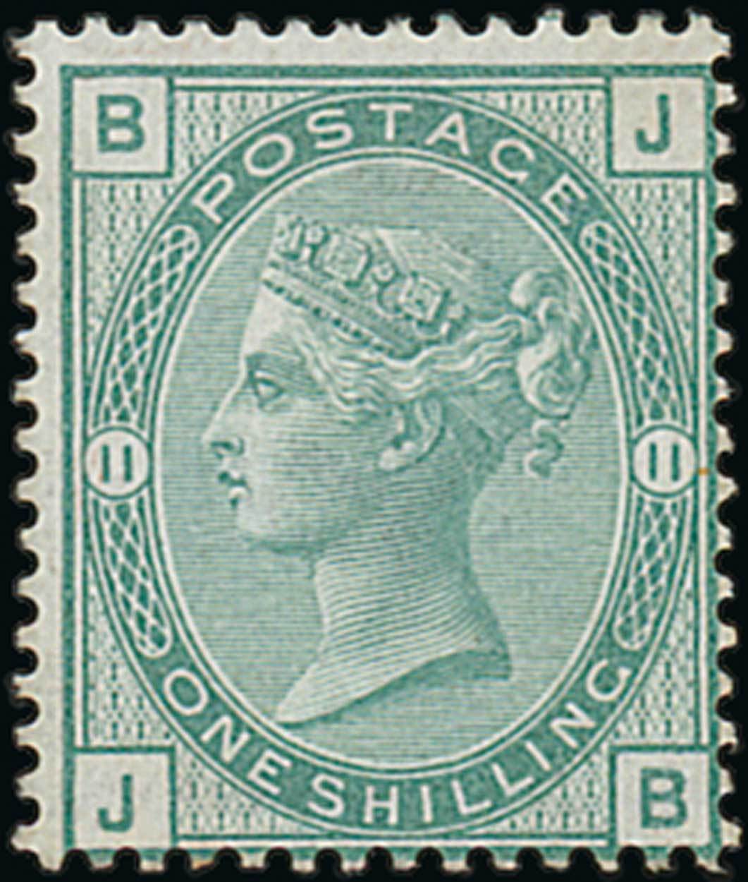 1/- green, Plate 11: JB, unused (regummed), fresh and fine. S.G. 150, £775. Photo