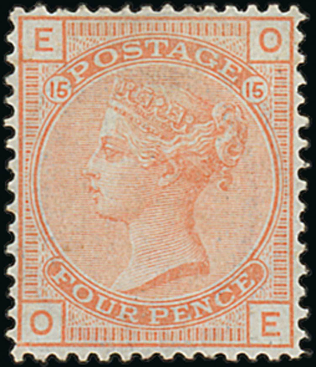 4d. vermilion, Plate 16: OE, large part original gum; fresh and fine. S.G. 152, £3,200. Photo