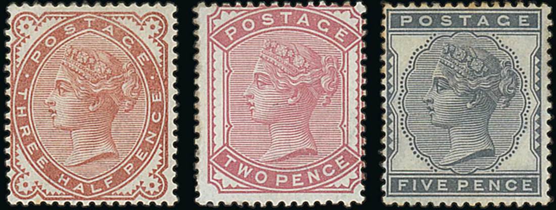 ½d. (2), 1d., 1½d., 2d. (2) and 5d., 1881 Die I 1d. (2), Die II 1d. (3), part original gum, unused or regummed, chiefly fine. £1,990. Photo