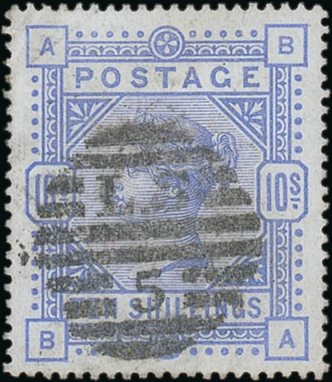 10/- cobalt, "LS/5" barred oval cancellation, fine and scarce. R.P.S. Certificate (1952). S.G. 182, £8,250. Photo