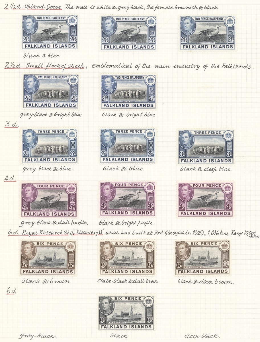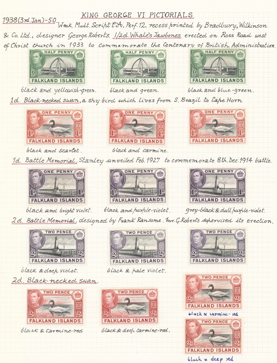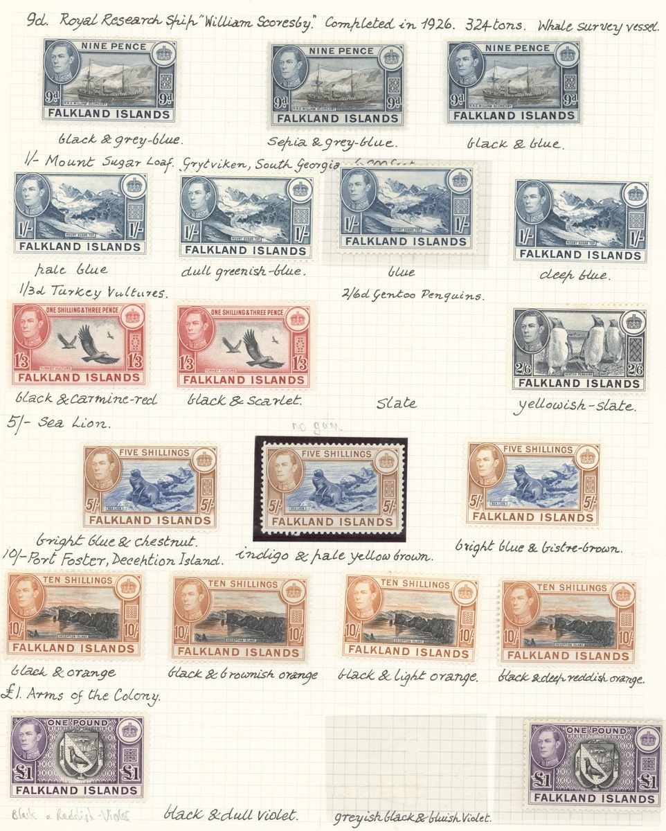 1938-50 set of eighteen mint along with shades (50) neatly written up on pages, better shades including 5/- indigo and pale yellow-brown (no gum) and 10/- black and deep reddish orange, a fine specialised group. S.G. 146-163 etc.
