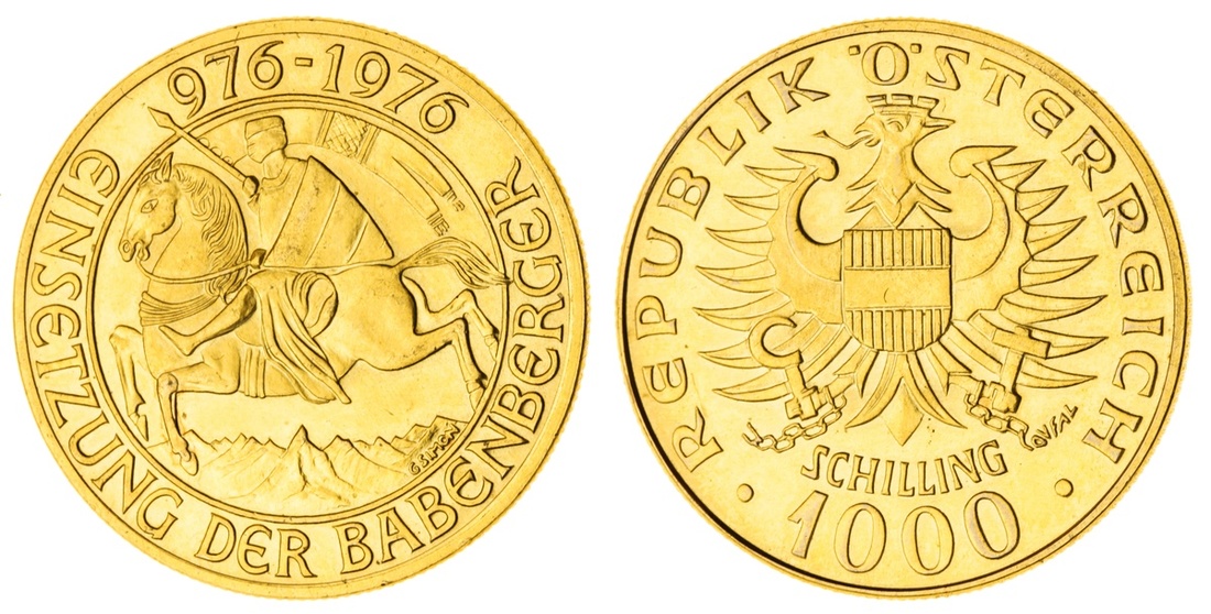 (g) Austria, Republic, gold 1000-Schilling, 976-1976, Millennium of the Babenberg Dynasty (Jaeger 702; Fb 909), uncirculated