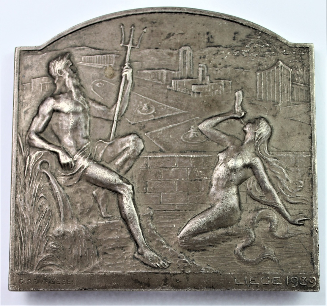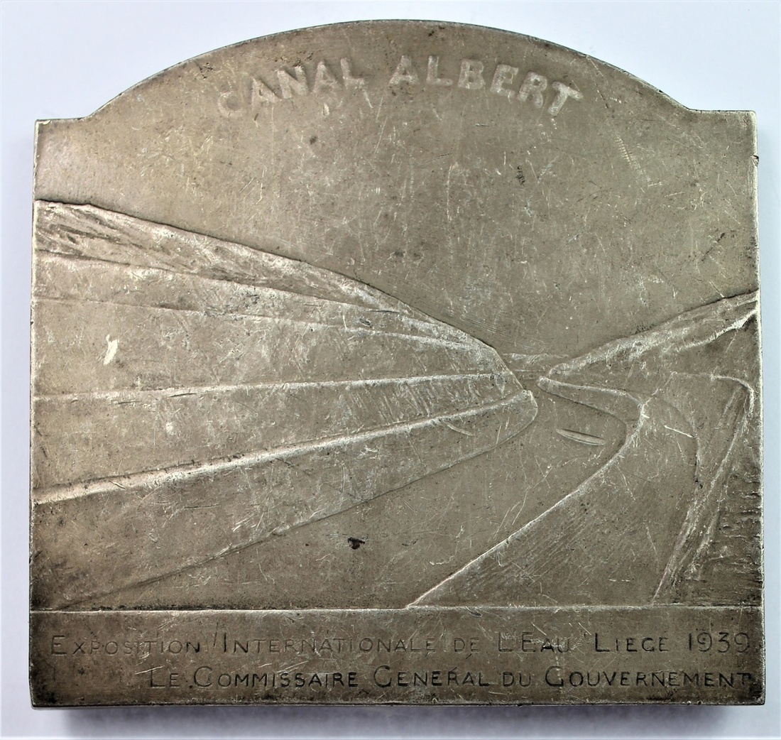 Belgium, International Exposition de l'Eau à Liège, 1939, AR plaquette, by G. Devreese, rev. vista of Canal Albert, 78x81mm., 223.80g, stamped J FONSON | A on lower edge (Willenz 404), light surface marks, otherwise very fine