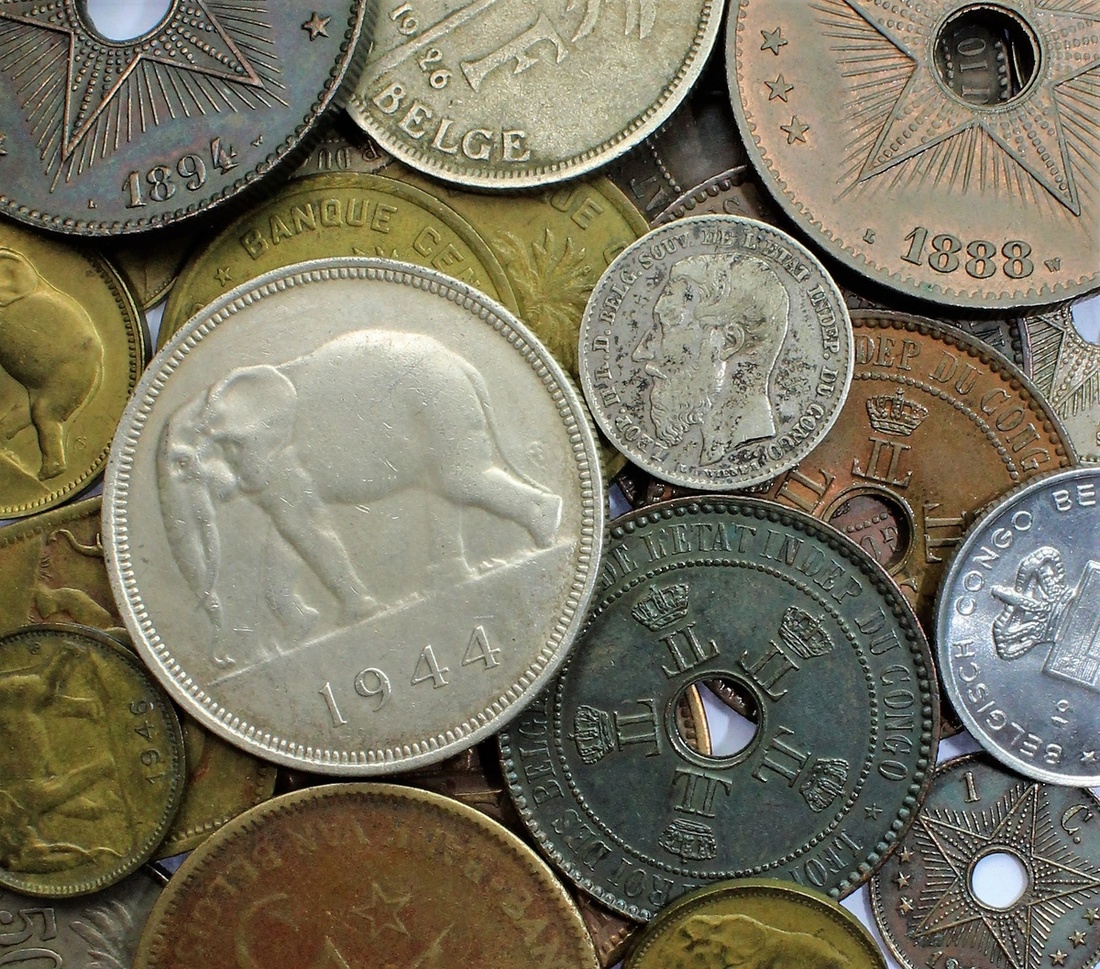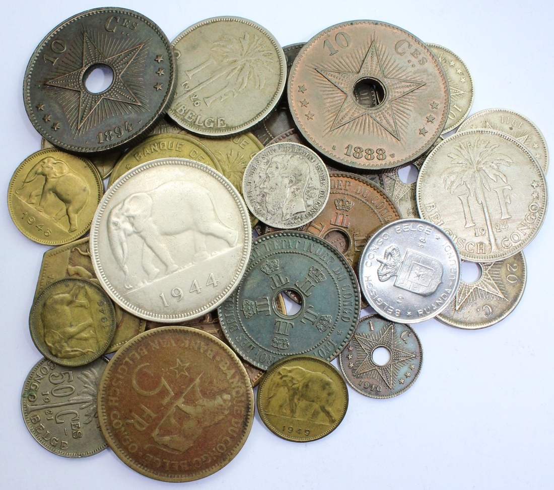 Belgian Congo, a miscellany [28], 50-Francs, 1944; and, 5-Francs [4], 1936; 1937; and, 2-Francs [3], 1943; 1946 [2]; and, Francs [5], 1924; 1926; 1944; 1946; 1949; and, 50-Centimes [2], 1891; 1921; 20-Centimes, 1911; and, 10-Centimes [6], 1888; 1894; 1906; 1908; 1911 [2]; and, 5-Centimes [4], 1887 [3]; 1888; and, Centime, 1910 (Dupriez 44, 87; KM 3-5; 10; 15; 18-19; 20-22; 24-28); additionally, Ruanda-Urundi, Belgium Territorial Mandate (1922-62), 5-Francs, 1952 [2]; also, Franc, 1958 (KM 1; 4), generally very fine, some better others lightly cleaned [28]
