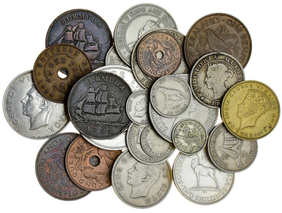 British Protectorates, Colonies and Commonwealth, a miscellany [23], including, Bermuda, Pennies, 1793 {2} (KM 5); also, Jamaica {4}, Pennies (3), 1906 (KM 23); 1928 (KM 25); 1945 (KM 32); also, Halfpenny 1893 (KM 16); New-Zealand [6], Crown, 1949 (KM 22); Halfcrown, 1940, Centennial issue (KM 14); Florin, 1950; Threepence, 1945; and Pennies [2]; 1952; 1954; generally very fine or better, especially the silver issues although the Crown cleaned; lastly, Southern Rhodesia and Rhodesia and Nyasaland [12], Crown (KM 27); 25-Cents, 1964 (KM 4); 2-Shillings, 1936 (KM 4); Shillings (2), 1947; 1949 (KM 18b; 22); Sixpences (2), 1951; 1957 (KM 21; 1); Threepences (2), 1952; 1957 (KM 20; 2); Pennies (2), 1944; 1963 (KM 8a; 3); lastly, Halfpenny, 1958 (KM 4), mostly extremely fine or better [23]