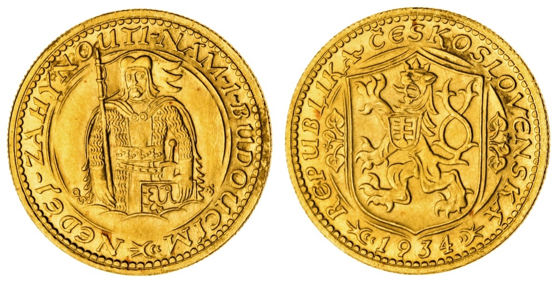 (g) Czechoslovakia, Republic, gold Ducat, 1934, Kremnitz (Valovic CSD2; Novotný 16; Fb 2; KM 8) light hairlines in obverse field, otherwise lustrous, extremely fine, rare, 9,729 struck.