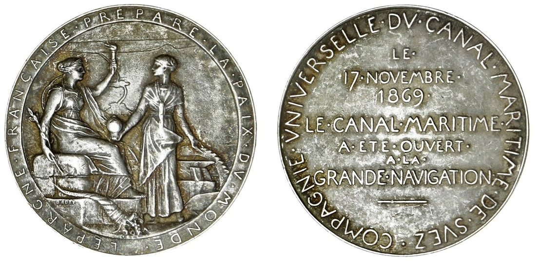 Egypt, Compagnie Universelle, Opening of the Suez Canal, AR Medal, 1869, by O. Roty, very fine