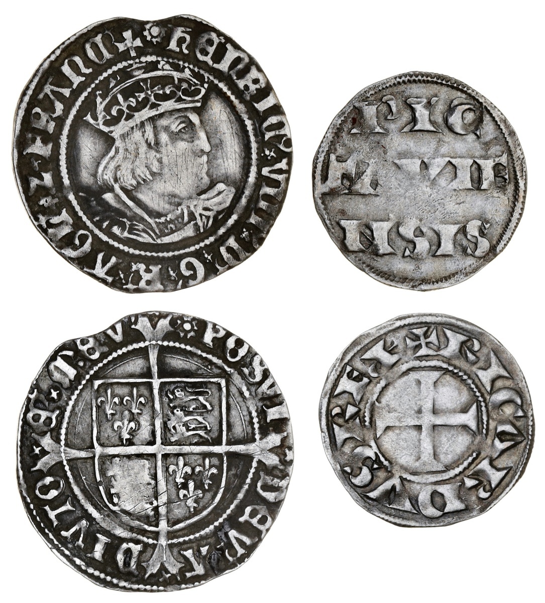 France, Aquitaine, Richard I, as Lord (1189-99), AR Denier, Poitou (Elias 8; S.8008); also, England, Henry VIII (1509-47), Groat, second coinage, m.m. rose (S.2337E), of fuller flan, fine [2]