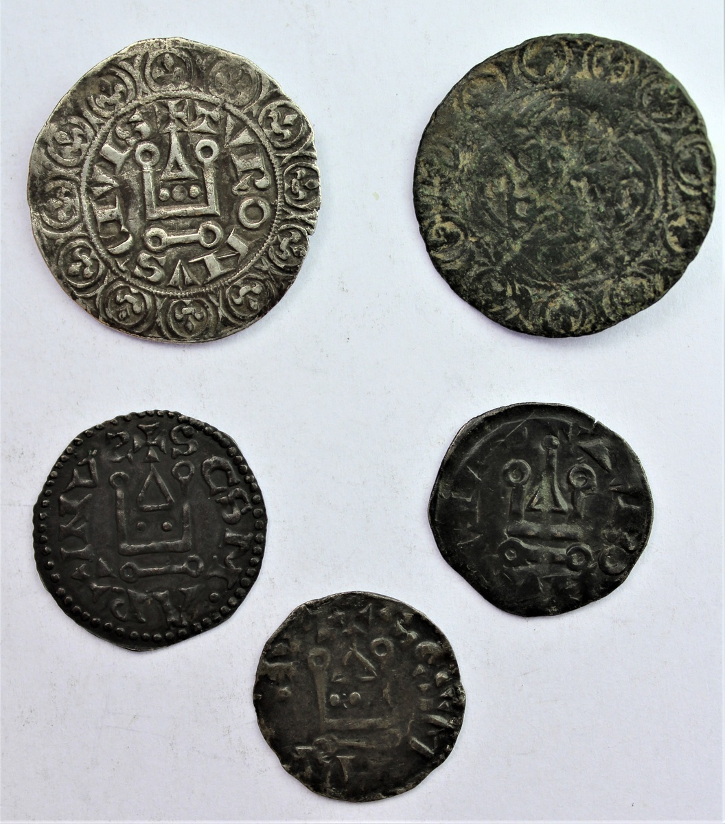 France, 'Tournois' coinages [4], including, Deniers [3], St Martin de Tours, (c.11th-12th Century) [2] (Duplessy 412; Boudeau 185); another, Philip II (1180-1223) (Duplessy 176); lastly, Philip IV (1268-1314), Gros à l'O rond (Duplessy 213), good fine to very fine; additionally, Medieval gaming Jetton [1], fleur-de-lis, rev. cross fleury, good [5]