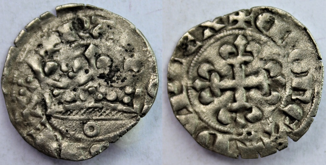 France, Kingdom {Capet}, Charles IV, le Bel (1322-28), Double-Parisis, 3rd emission, kAROLVS REX {clover}, annulet below crown, rev. MONETA DVPLEX (Duplessy 244c), good fine for issue, scarce