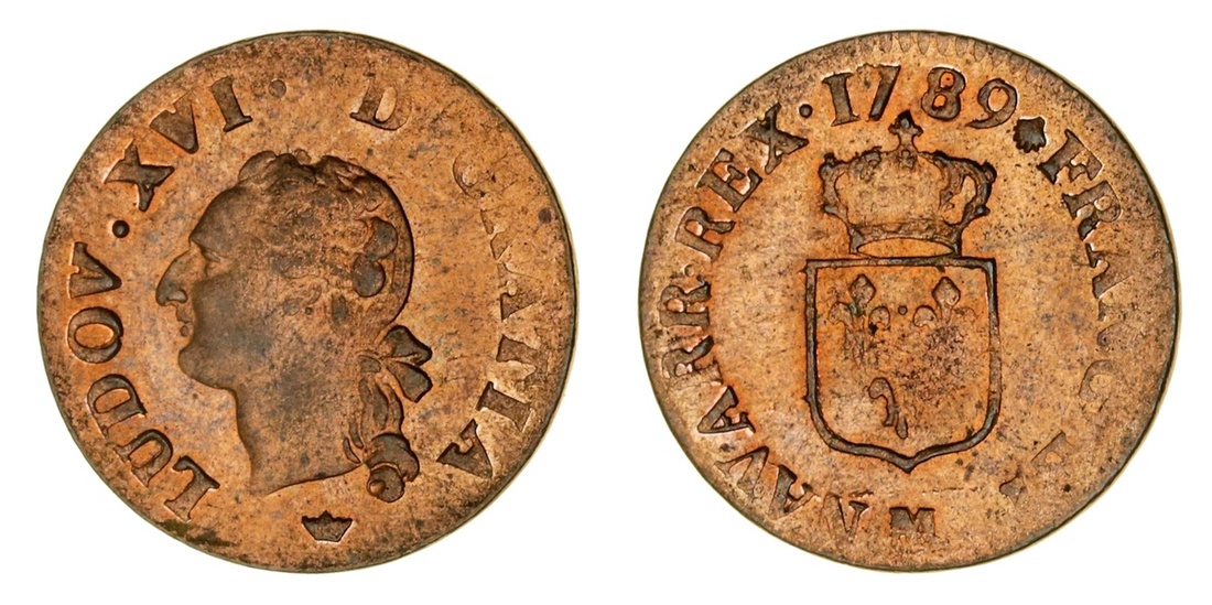 France, Kingdom {Bourbon}, Louis XVI (1774-93), Liard à l’écu, 1789-M, Toulouse (Droulers 822; Duplessy 1711; Gad 348) some peripheral striking weakness, otherwise full mint red colour and as issued