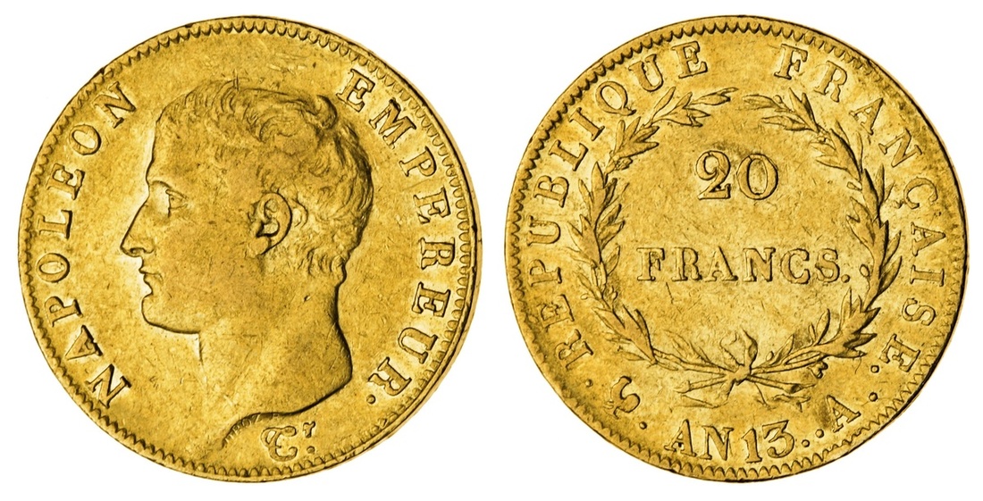 (g) France, First Empire, Napoléon Bonaparte (1804-14), gold 20-Francs, AN 13-A {1804}, Paris (Le Franc 512; Gad 1022), lustrous, good fine