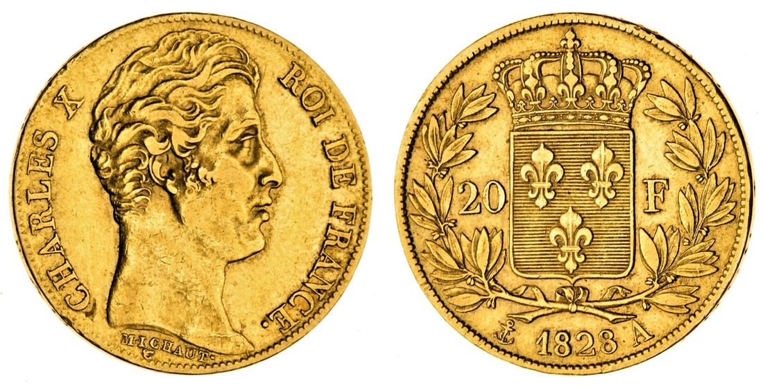 (g) France, Restored Kingdom, Charles X (1824-30), gold 20-Francs, 1828-A, Paris (Le Franc 520; Gad 1029; Fb 549), light rub, very fine