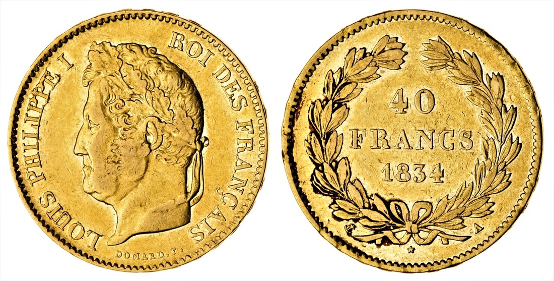 (g) France, Restored Kingdom, Louis-Philippe I (1830-48), gold 40-Francs, 1838 (Le Franc 546; Fb 557; KM 747.1), about very fine