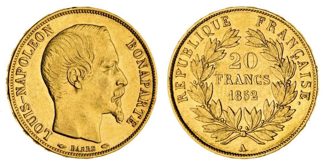 (g) France, Second Republic, 'Louis-Napoléon Bonaparte' {Napoleon III} (1852), gold 20-Francs, 1852-A, Paris (Le Franc 530.1), lustrous, very fine