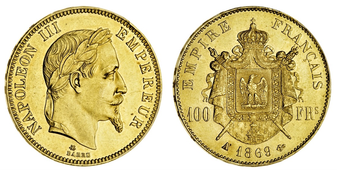 (g) France, Second Empire, Napoléon III (1852-70), gold 100-Francs, 1869-A, Paris (Le Franc 551.12; Gad 1136; Fb 580; KM 802.2), rare, in PCGS holder, graded MS61