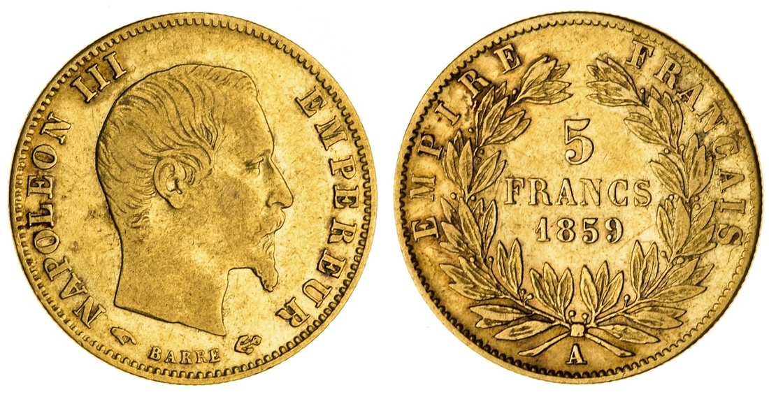 (g) France, Second Empire, Napoléon III (1852-70), gold 5-Francs, Paris [2], 1859-A, bare head; another, 1864-A, laureate head (Le Franc 501-02; Gad. 1001-02), the first fine, the second lustrous, extremely fine or better, scarce thus [2]