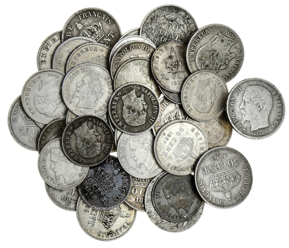 France, Second Empire, Napoléon III (1852-70), 50-Centimes (14), Paris [9], 1853-A weak, but legible, a scarce date; 1858-59-A; 1862-A (KM 794.1); also, type 2 {5}, 1864-68-A (KM 814.1), some cleaned, otherwise generally good fine; Strasbourg [2], type 2, 1864-BB; 1867-BB (KM 814.1), good fine to very fine; Bordeaux [3], 1864-K; 1865-K; 1867-K (KM 814.3); additionally, 20-Centimes (23), Paris [13], 1853-A; 1854-A [3]; 1855-A; 1857-A; 1859-A; 1860-A; 1864-A; 1866-A; 1867-A [3]; 1868-A; also, Strasbourg [8], 1860-BB; 1866-BB; 1867-BB {5}; 1868-BB; Bordeaux [2], 1866-K; 1867-K (KM 778.1-2; 805.1-3; 808.1-3), fine to extremely fine, some choice and with attractive mint bloom (37)
